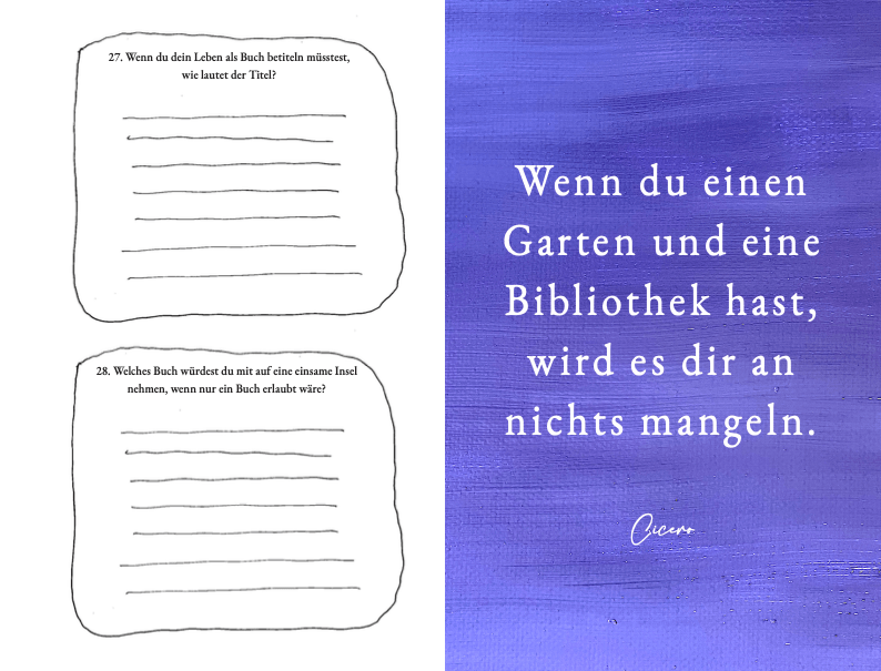 14 Autorenporträts, von mir persönlich geschrieben und gezeichnet und 33 Fragen rund um das Lesen sind der unterhaltsame Start für deine Lesebiographie.
